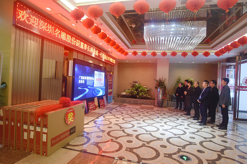 名雕装饰集团副董事长林金成领导一行在我集团领导及我司总经理梁海富的陪同下参观了365手游官网_365体育娱乐手机平台_3658官方网 家装材料展厅,向其介绍了365手游官网_365体育娱乐手机平台_3658官方网 拥有自己的集采中心,一线大牌材料直采,省去中间商赚差价环节;同时了解到365手游官网_365体育娱乐手机平台_3658官方网 79800元全包大整装模式,拎包即可入住;对此表示365手游官网_365体育娱乐手机平台_3658官方网 不愧为广西本土老品牌高性价比家装