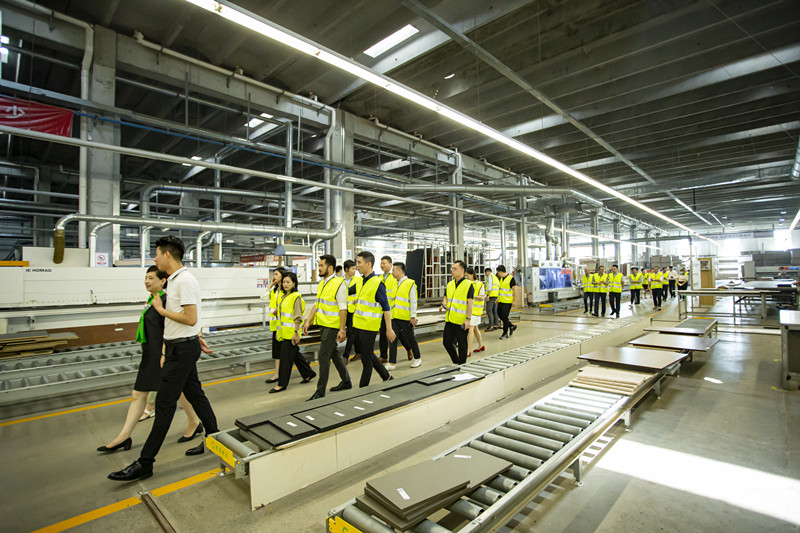 2021年6月22日,在志邦家居领导的热情接待及引导下,365手游官网_365体育娱乐手机平台_3658官方网 装饰集团领导一行前往志邦家居绿色工厂车间,参观并了解了志邦家居各产品的生产工艺,对志邦家居先进的现代化生产设备、精湛的工艺技术和系统化、精细化的生产管理有了更深入的认识。志邦家居全自动智能数控设备建立起一条龙式“信息化”智能生产体系,大大提高了工程、产品专业化规模生产的效率;充分彰显出志邦家居23年以来的品质工艺与创新进取精神。